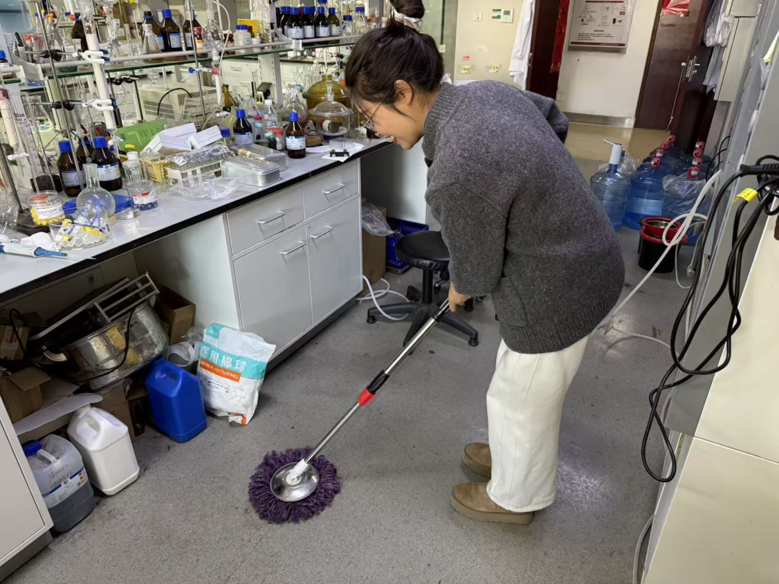 弯腰清理的间隙,我忽然明白:雷锋精神从来不是遥不可及的丰碑,它就藏在每一次细致入微的服务里。当看到大家能在干净的环境里安心实验,所有的汗水都有了意义。原来,做一颗“螺丝钉”是如此充实——在不起眼的角落,用最朴素的劳动,为科学探索添一份力。这个下午,我在实验室里读懂了奉献:它不是轰轰烈烈,而是俯身擦拭的每一个瞬间。