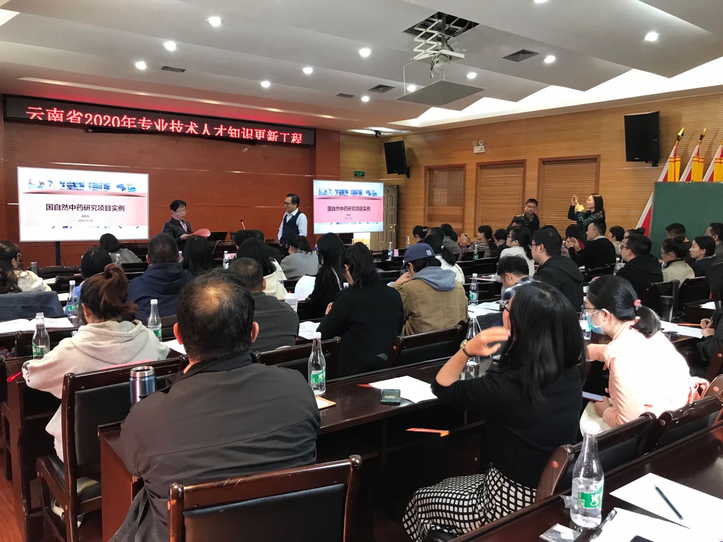 2020年11月20日云南省 2020 年专业技术人才知识更新工程“疫情防控常态下中医药人才培养”高级研修班培训在云南中医药大学召开,h图书馆 徐宏喜院长受邀参加并向大家讲解国自然項目申报实例分析。参会人员积极提问,会议气氛热烈。
