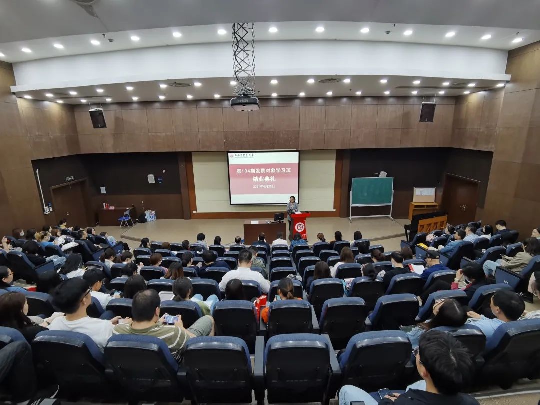 4月28日下午,校第104期发展对象培训班结业典礼在6504举行。校组织(统战、党校)副部长严月华、校组织部组织员千英信、护理学院党总支书记史美育、h图书馆 党委副书记沈漫、公共健康学院党总支副书记干旦峰及培训班班主任、指导老师等出席会议。会议由培训班班主任、h图书馆 组织员何丹丹主持。