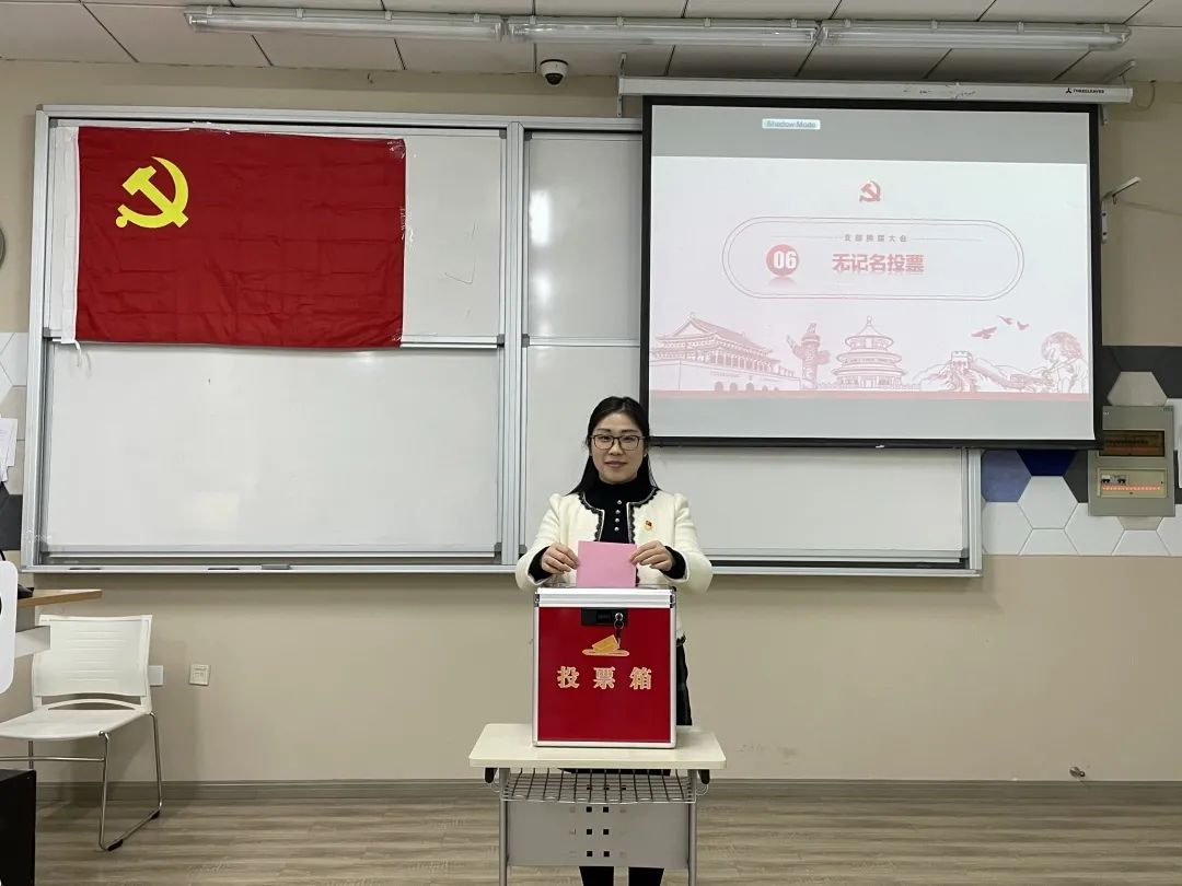 监票人清点到会党员人数,报告到会情况,h图书馆 第一学生党支部7名正式党员全部出席,超过应到党员的五分之四,可以进行选举。分发选票后,大会进入选举程序,党员同志们充分行使自己的选举权,慎重投下了手中神圣的一票。