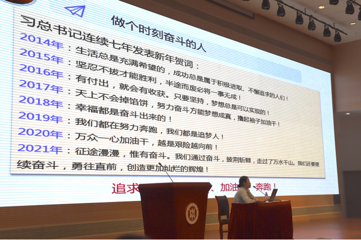 9月7日晚上,h图书馆 2021级全体新生在图书馆裙楼四楼报告厅进行新生教育系列活动——“书记第一课”。h图书馆 党委书记沈岚为新生们做了题为“无奋斗,不青春——争做新时代中医药事业接班人”的主题讲座,将党史学习教育融入新生理想信念教育中,筑牢新生信念之基,把稳思想之舵,勇于担当作为,不负青春砥砺奋斗