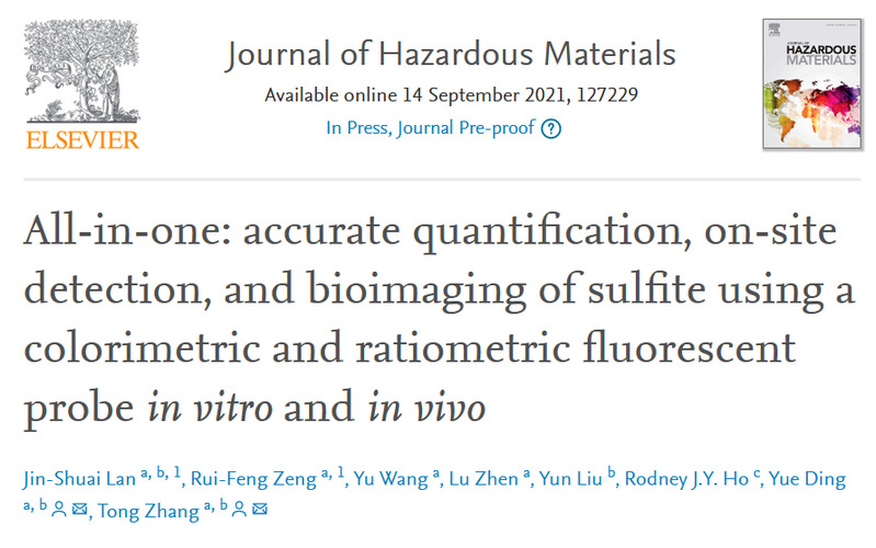 近日,h图书馆 张彤教授团队在中药二氧化硫残留快速检测方法研究中取得进展。该研究成果All-in-one: accurate quantification, on-site detection, and bioimaging of sulfite using a colorimetric and ratiometric fluorescent probe in vitro and in vivo于近日发表于Journal of Hazardous Materials(DOI: //doi.org/10.1016/j.jhazmat.2021.127229)。
