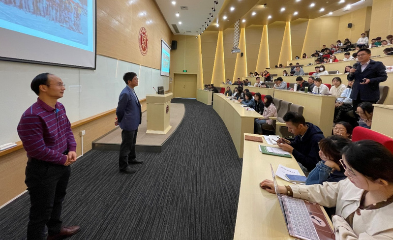 10月28日上午,h图书馆 系列学术讲座之“科技创新与中药材品质提升工程”讲座在6301举行。主讲人中国中医科学院陈士林首席研究员结合当代中药材面临的困境,以及团队的研究方向和科研成果,为大家带来了一场精彩纷呈的讲座,全场座无虚席,同学们静静聆听陈教授的演讲。
