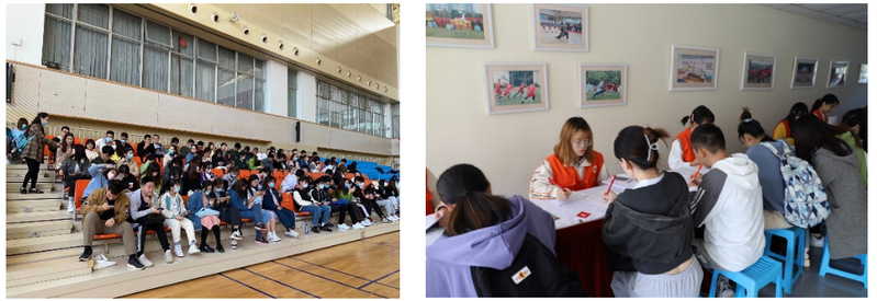 在体育馆内,除了同学之外,也不乏熟悉的老师们。我们对老师们的了解,可能仅限于在课堂上,在答疑时,但是献血活动让我们看到了老师的另外一面。今年,h图书馆 的宋龙老师和王慧珠老师也加入了献血的队伍中,让我们也一起为老师们打call~