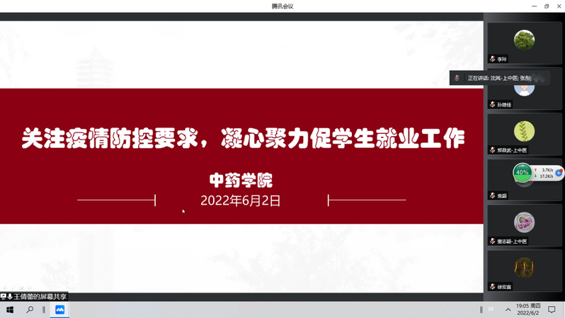 6月2日晚上,学院召开全院疫情防控和毕业生就业专题会议,学院党委书记沈岚、院长张彤、副院长郑昌武、党委副书记王倩蕾及各科室主任等参加会议,会议由张彤院长主持。由于疫情防控要求,会议以腾讯会议线上方式进行。