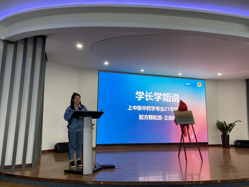 随后,上海雷允上药业有限公司副总经理李琦与h图书馆 党委书记沈岚共同为上海雷允上药业有限公司岐黄育人实践基地揭牌,推动了校企合作迈上新台阶。16级中药学毕业生高守甲、17级中药学毕业生王雨婷、18级中药学毕业生黄邦路进行“学长学姐说”分享,分享了入职上海雷允上药业有限公司后的个人成长与发展,对学校及公司的培养表示感谢,后期也将秉持初心继续在岗位上用心做好各项工作。六神丸非遗技艺第七代传承人王圣洁老师为中药创新班师生进行现场手工泛丸展示,将制药人的匠心与中医药文化的传承与创新通过一粒粒药丸传递给师生。