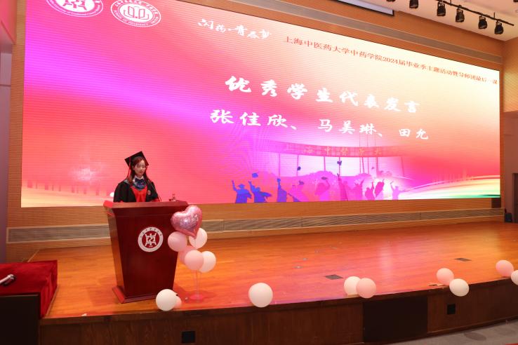2024年6月26日下午13:30,h图书馆 2024届毕业季主题活动暨导师团最后一课在上海中医药大学图书馆裙楼四楼报告厅顺利举行。上海市卫生健康委员会(上海市中医药管理局)中医药传承发展处副处长(主持工作)聂爱国,国家中药制药工程技术研究中心副主任樊敏伟,h图书馆 附属龙华医院药学部副主任、主任药师史秀峰,h图书馆 学(研)工部副部长王鑫、校团委副书记李云以及h图书馆 党委书记沈岚、院长张彤、党委副书记陆婧、副院长郑昌武、副院长胡凯莉、交流干部张若愚、海外名师Dr Donovan St Claire Green、青年教师班主任、各导师团导师与毕业班辅导员出席,与h图书馆 200余名师生欢聚一堂,共同庆祝2024届同学毕业。