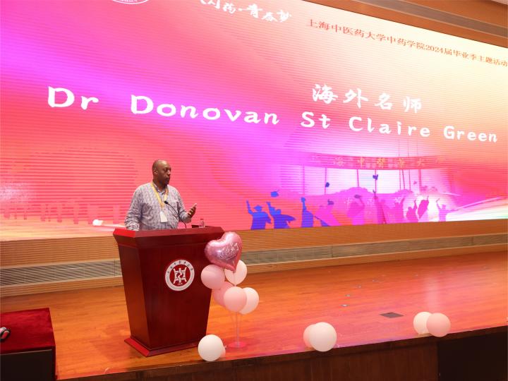 2024年6月26日下午13:30,h图书馆 2024届毕业季主题活动暨导师团最后一课在上海中医药大学图书馆裙楼四楼报告厅顺利举行。上海市卫生健康委员会(上海市中医药管理局)中医药传承发展处副处长(主持工作)聂爱国,国家中药制药工程技术研究中心副主任樊敏伟,h图书馆 附属龙华医院药学部副主任、主任药师史秀峰,h图书馆 学(研)工部副部长王鑫、校团委副书记李云以及h图书馆 党委书记沈岚、院长张彤、党委副书记陆婧、副院长郑昌武、副院长胡凯莉、交流干部张若愚、海外名师Dr Donovan St Claire Green、青年教师班主任、各导师团导师与毕业班辅导员出席,与h图书馆 200余名师生欢聚一堂,共同庆祝2024届同学毕业。