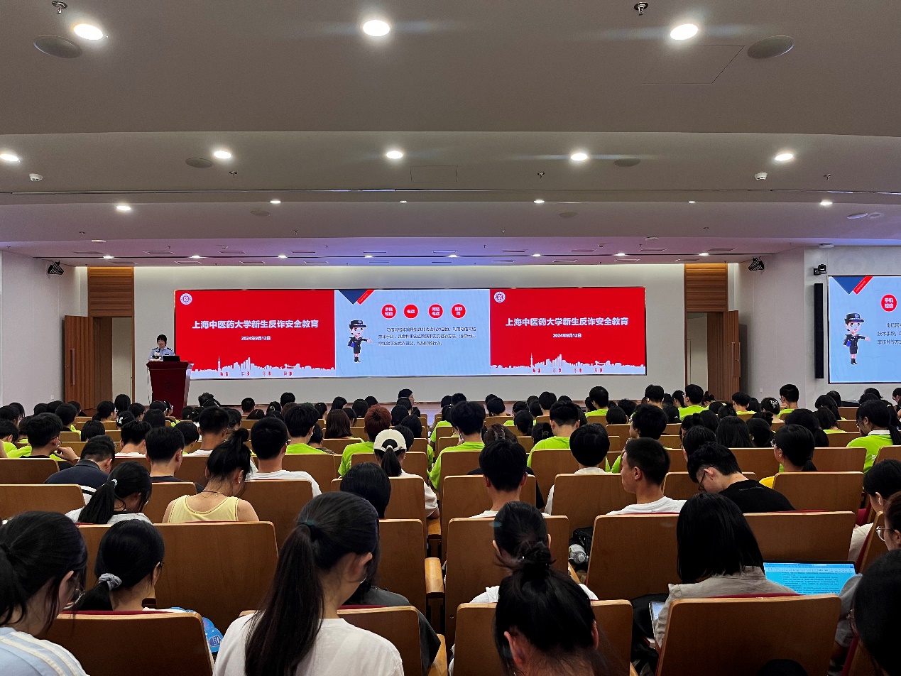 为增强新生安全防范意识,提高自我保护能力,构建安全和谐的校园环境,2024年9月12日下午,h图书馆 全体新生参加了安全教育第一课—— “防范于心,反诈于行”主题讲座。本次反诈安全教育专题讲座由h图书馆 、中西医结合学院和公共健康学院联合举办,特邀张江高校派出所殷慧警官为新生主讲。讲座由公共健康学院党委副书记干旦峰主持,h图书馆 党委副书记陆婧、中西医结合医院党委副书记国海东及各学院新生辅导员出席。