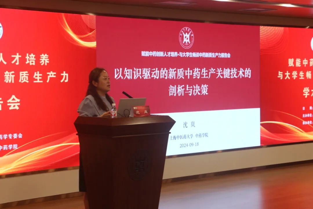 在学术报告环节,上海药物所研究员甘勇以《药物载体理性设计及创新制剂的探索与实践》为题,从创新药物的难点出发,深入浅出地讲述了其团队基于关键物理属性的纳米药物载体设计研究与成果,并分享了3个创新药物制剂转化的实例。随后,上海市药学会中药学专委会主任委员、h图书馆 党委书记沈岚进行了题为《以知识驱动的新质中药生产关键技术的剖析与决策》的报告,系统地介绍了QbD理念的起源与发展,以及在中药制剂中的应用;基于中药制剂研发与生产中的问题,引入专家系统,并以具体实例阐述了专家系统在处方设计及制剂全生命周期质量控制中的应用。精彩的报告吸引了与会的专家和师生,现场讨论热烈。