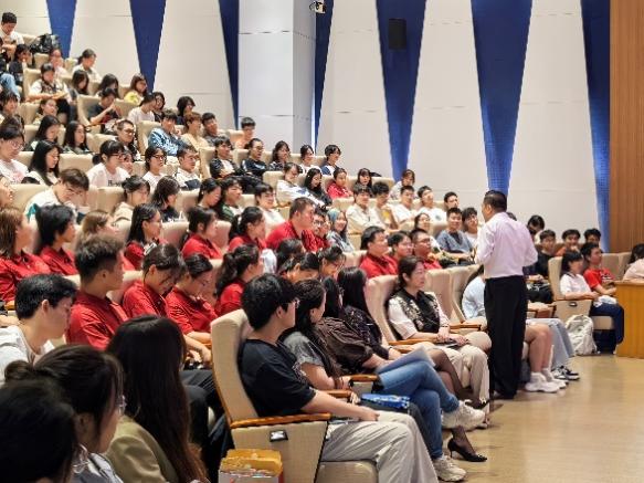 2024年10月16日下午,h图书馆 2024级新生系列活动之“科学家第一课”在6304举行,本次活动邀请了国家中组部特聘教授、一带一路中医药发展联盟主席、h图书馆 名誉院长徐宏喜,以“中药创新研究成果及国际注册进展”为主题为2024级全体本科生、研究生新生做专题讲座。h图书馆 党委书记车荣华、党委副书记陆婧、全体新生辅导员出席本次活动,活动由党委副书记陆婧主持。