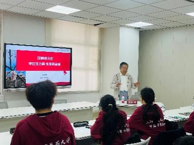 紧接着,余校长通过对中医教育发展的回顾,讲述了从古至今的官办医学教育、现代办学方式的中医教育机构和上海民办中医教育机构。随后,余校长介绍上中医建院及大学历史沿革,同学们在余校长的带领下,一同回顾了1956年成立、1984年合署、1993年更名、2003年东迁和2017年至今的学校发展的点点滴滴。回顾校史,同学们收获颇丰,增强了对学校的归属感与认同感,更激励同学们弘扬前辈精神,攀登时代高峰,接过新时代接力棒,牢记中药人守正创新的责任使命。
