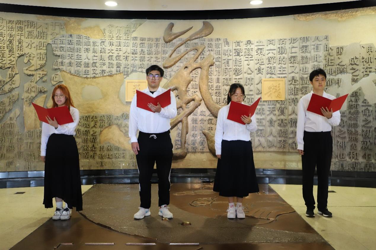 h图书馆 “红景天”大学生宣讲团毕业生党员代表张嘉铭、王嘉琦、顾可煦、李乔睿同志,带来了精彩的主题宣讲“岐黄薪火,青年担当:我们的中药强国梦”。他们用坚定的信念和切身的实践表达了中药青年党员对传承责任的深切体悟与使命自觉,激励同学们自觉将个人发展融入民族医药的伟大征程中。