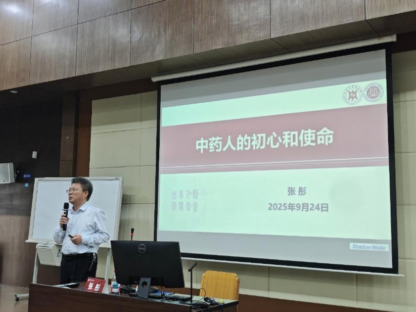 2025年9月24日下午,h图书馆 2025级全体新生在6504教室进行新生教育系列活动——“院长第一课”。h图书馆 院长张彤为新生们做题为“中药人的初心和使命”主题讲座。讲座由h图书馆 党委副书记陆婧主持,h图书馆 全体新生辅导员出席。