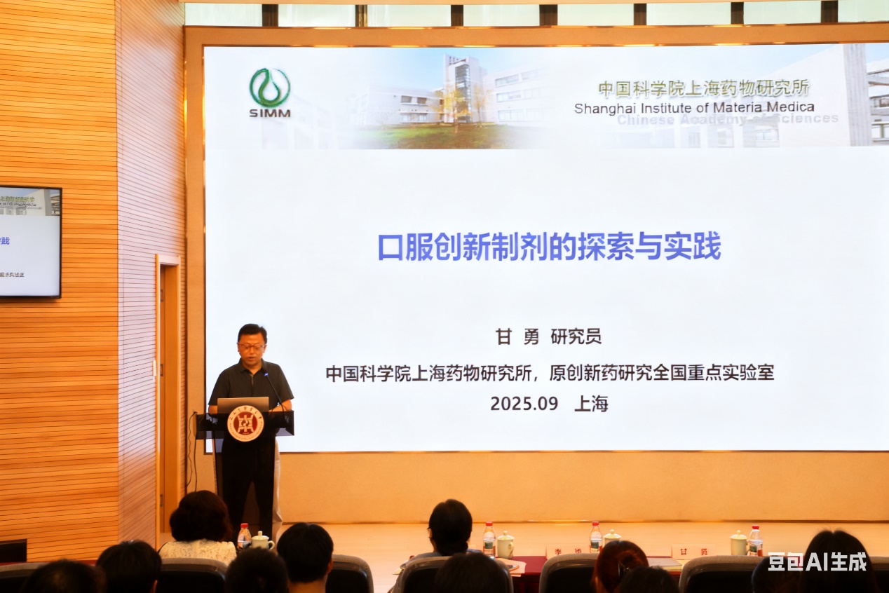 甘勇研究员以“口服创新制剂的探索与实践”为题,基于小分子药物口服吸收率低的痛点问题,提出仿生设计理念,以构建类杆菌状纳米载体、调节刚度属性等策略为例介绍了如何有效促进载体克服生理屏障,提高药物递送效率。同时分享了谷美替尼片剂、石杉碱甲控释片、侗药甜茶三个创新药物转化案例,并总结了促吸收制剂开发的趋势与挑战。