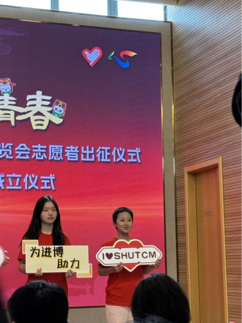 仪式现场,志愿者们与各学院伙伴庄严宣誓,将以真诚的热情服务八方来宾,以自信的姿态展现岐黄风采,以最饱满的精神投身进博工作。“中医进宝,志愿有我;携百草之灵,赴世界之约”——这不仅是口号,更是h图书馆 “小叶子”们内化于心的坚定信念。