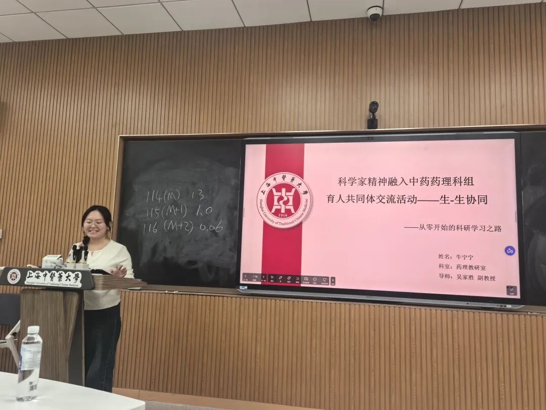 为深化“科学家精神”在育人实践中的引领作用,构建教学相长的中药药理学科组育人共同体,2025年11月20日,h图书馆 药理教研室成功举办了专题交流活动。本次活动特邀上海市药物(中药)代谢产物研究重点实验室主任、海军军医大学药学系药物分析学教研室主任周婷婷教授,为教研室的青年教师和同学们作了题为“研究生导师育才之道”的精彩报告。