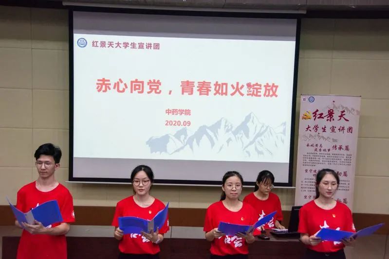 红色的底衫上印着“杏会”二字的红景天学长们的声情并茂的朗读,让我明白了咱中医青年的责任与担当。他们用实际行动告诉了我们上中医的学子应勇立潮头,为国家的发展添砖加瓦,为民族的复兴铺路架桥!那红色T恤似乎就象征着那屹立在高原的红景天,他们所讲的去西藏的奉献人物又何尝不是那“红景天”最好的代言。这激励着我们新一代青年学习、借鉴、进步,就像那高原的使者给我们的第一抹亮色!