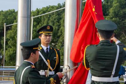 “五星红旗迎风飘扬, 胜利歌声多么响亮”,迎着清晨的阳光,五星红旗在我们的注目下冉冉升起。身为一名新入学的研究生,我望着旗杆最顶端飘扬的红旗,伴随着庄严高昂的国歌,即使秋意深浓,我的内心仍然充满了对新生活的向往和期待。同时身为一名学生党员,不忘初心、牢记使命,本次升旗仪式让我更加铭记国家和党对我们赋予的殷切期望和要求,青年兴则国家兴,青年强则国家强,我要用实际行动,不畏困难、艰苦奋斗,积极为祖国的发展建设添砖加瓦。