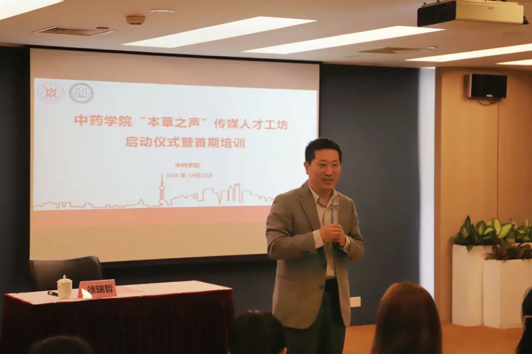 为了实现h图书馆 综合育人的政策方针,进一步提高h图书馆 学生会骨干和各班级宣传队伍的能力建设,培养一出只高水平高能力的传媒队伍,h图书馆 “本草之声”传媒人才工坊于2020年10月21日下午三点在国教楼3楼会议中心召开第一期培训活动。解放日报主任记者、第一批首席记者、上观新闻教育栏目主编徐瑞哲应邀参与培训,h图书馆 党委书记李医明、h图书馆 党委副书记沈漫、辅导员张雯怡、胡志强出席本次活动。本次培训活动由辅导员张雯怡主持。
