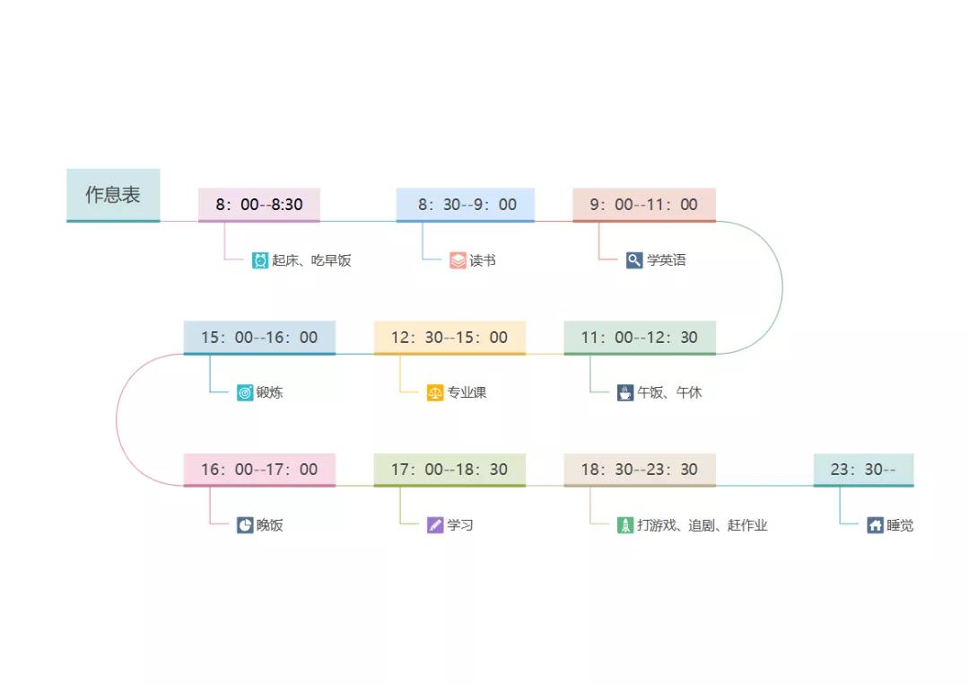 作息表形式需多样化,且时间安排要求内容清晰、完整、有条理,劳逸结合,为真实学习生活的作息时间安排。