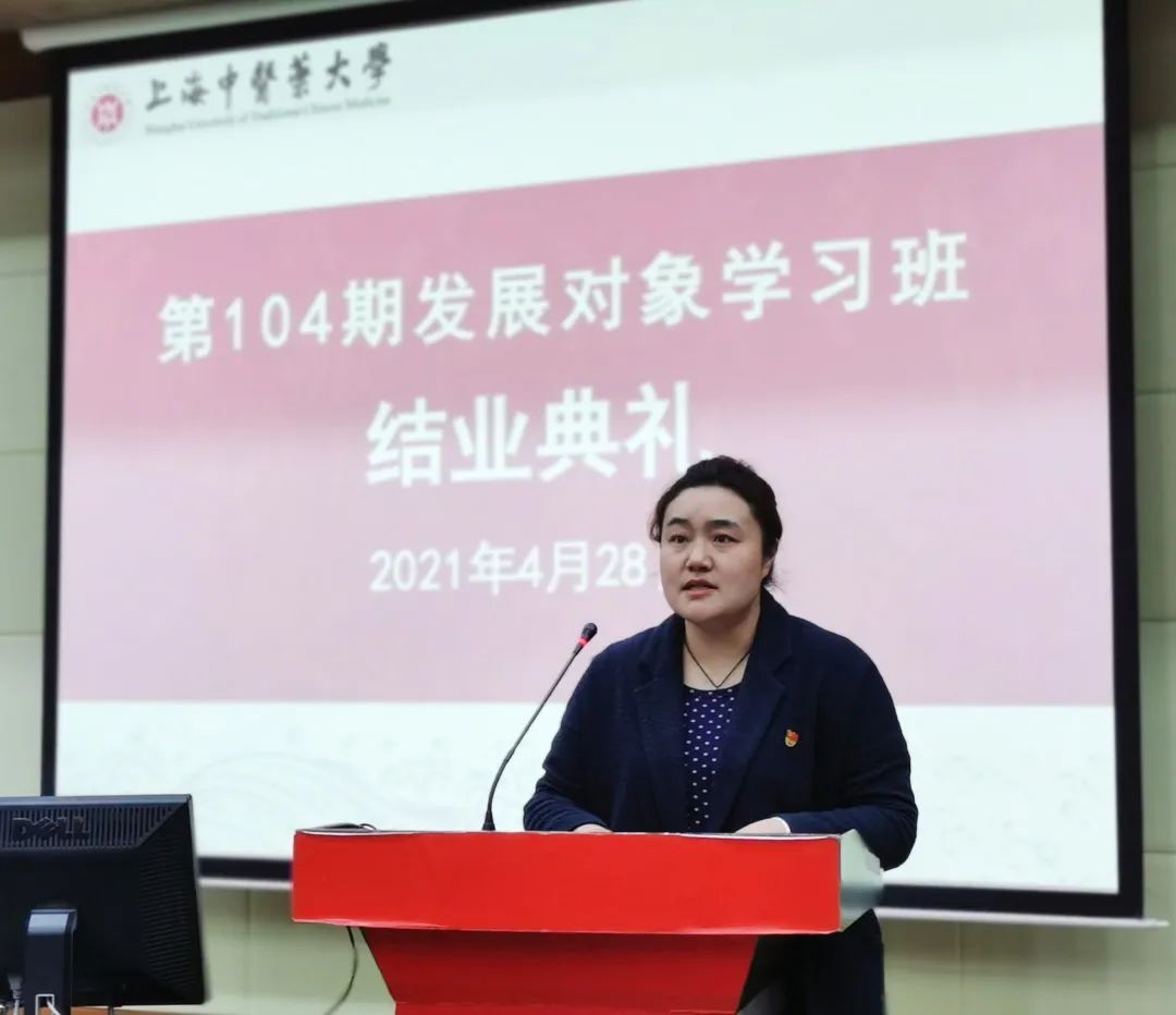 4月28日下午,校第104期发展对象培训班结业典礼在6504举行。校组织(统战、党校)副部长严月华、校组织部组织员千英信、护理学院党总支书记史美育、h图书馆 党委副书记沈漫、公共健康学院党总支副书记干旦峰及培训班班主任、指导老师等出席会议。会议由培训班班主任、h图书馆 组织员何丹丹主持。