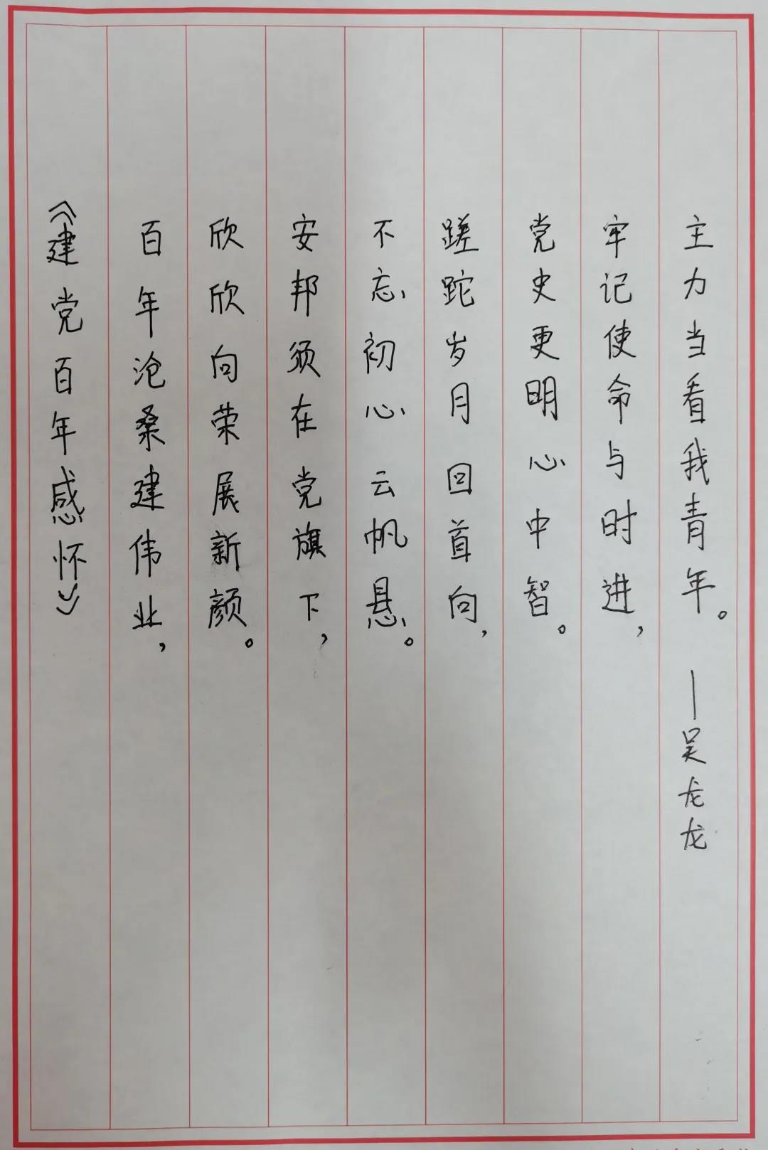 一幅幅意境高远的书法作品,承载着h图书馆 研究生对党和国家的深情礼赞,展现了丰厚的文化内涵和高度的文化自信。本次活动的举办,旨在进一步促进研究生党员之间的交流互动,提升创作热情与水平,以实际行动向中国共产党成立100周年深情献礼!