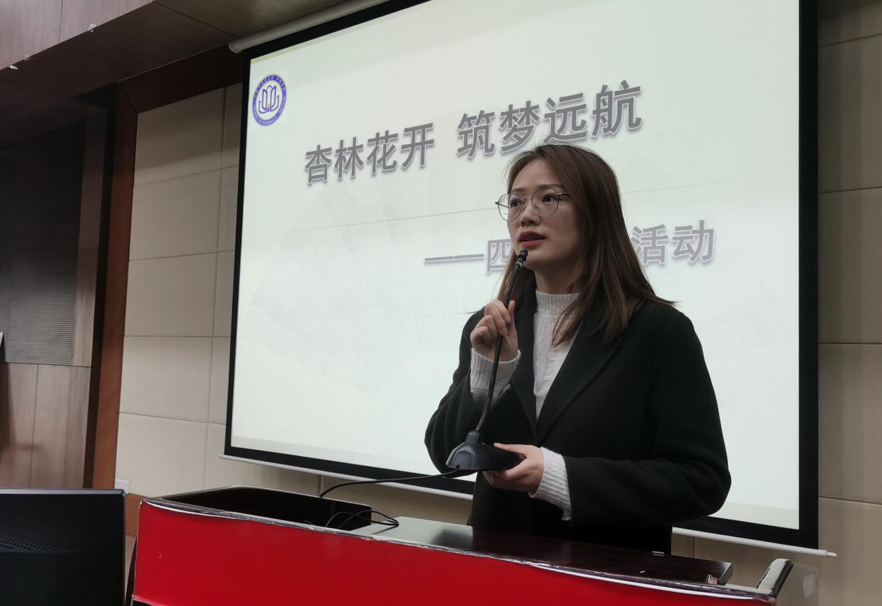 导语:“杏林花开,筑梦远航”四院联谊活动在3月24日于6501教室由h图书馆 主办,本次活动邀请到了针灸推拿学院、护理学院、基础医学院的同学们来参加,夏晴老师出席本次活动。本次活动主要包含保研学姐心得分享、四院特色主题活动、小任务打卡三个部分,旨在通过联谊活动增加不同学院同学之间的友谊,促进学院之间互动合作。