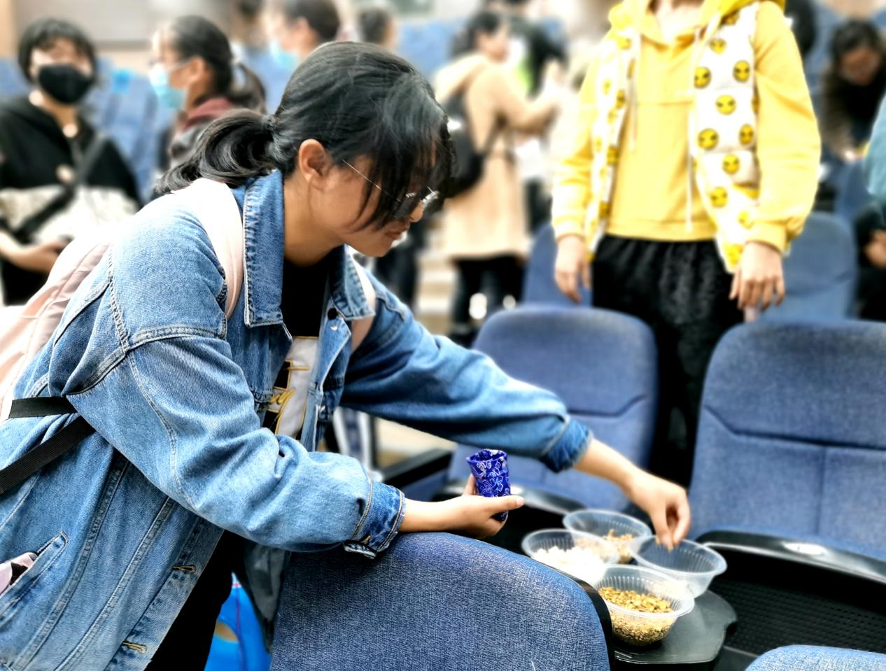 而后是同学们都翘首以盼的小任务打卡和学院特色活动。针灸推拿学院让大家体验了肩颈部按摩,大大地缓解了日夜学习而劳累疼痛的肩膀,听说还可以预防劲椎病的发生哦,有机会的话大家不妨让针推的同学也为你露一手呢。基础医学院的志愿者帮大家免费把脉,耐心而细致地一一列出根据不同体质,大家日常生活中可以注意的事项。h图书馆 为大家介绍了香囊的历史和功效,并让大家自己动起手来制作自己的香囊,带回寝室做一份独家回忆。