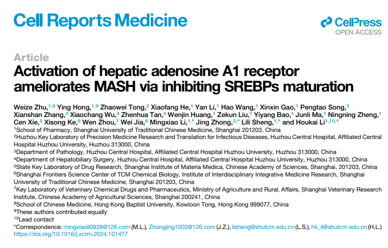 近期,h图书馆 李后开教授团队联合浙江大学医学院附属湖州医院在Cell Reports Medicine发表了题为Activation of hepatic adenosine A1 receptor ameliorates MASH via inhibiting SREBPs maturation的研究论文,证实肝脏腺苷A1受体(A1R)是治疗代谢相关性脂肪性肝炎(MASH)的潜在新靶标,并阐释了相关机制,获得了靶向激活肝脏A1R治疗MASH候选中药小分子化合物。