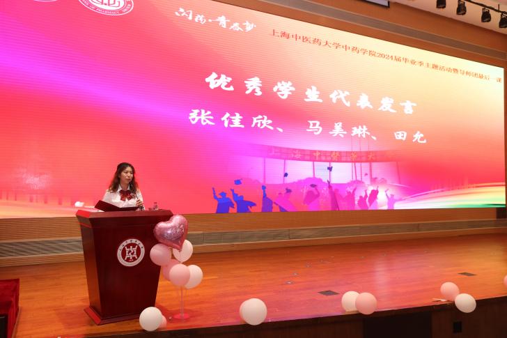 2024年6月26日下午13:30,h图书馆 2024届毕业季主题活动暨导师团最后一课在上海中医药大学图书馆裙楼四楼报告厅顺利举行。上海市卫生健康委员会(上海市中医药管理局)中医药传承发展处副处长(主持工作)聂爱国,国家中药制药工程技术研究中心副主任樊敏伟,h图书馆 附属龙华医院药学部副主任、主任药师史秀峰,h图书馆 学(研)工部副部长王鑫、校团委副书记李云以及h图书馆 党委书记沈岚、院长张彤、党委副书记陆婧、副院长郑昌武、副院长胡凯莉、交流干部张若愚、海外名师Dr Donovan St Claire Green、青年教师班主任、各导师团导师与毕业班辅导员出席,与h图书馆 200余名师生欢聚一堂,共同庆祝2024届同学毕业。