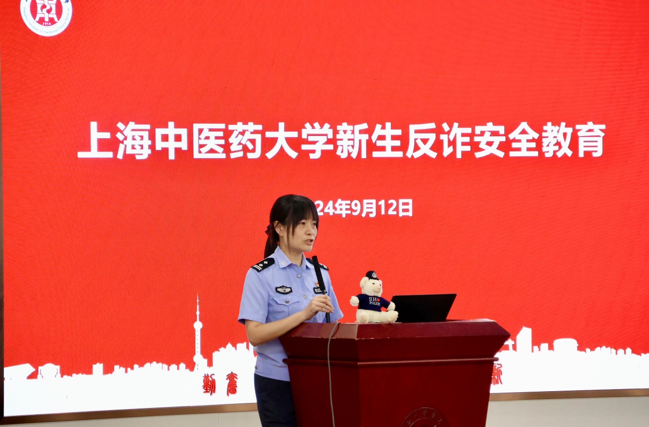 为增强新生安全防范意识,提高自我保护能力,构建安全和谐的校园环境,2024年9月12日下午,h图书馆 全体新生参加了安全教育第一课—— “防范于心,反诈于行”主题讲座。本次反诈安全教育专题讲座由h图书馆 、中西医结合学院和公共健康学院联合举办,特邀张江高校派出所殷慧警官为新生主讲。讲座由公共健康学院党委副书记干旦峰主持,h图书馆 党委副书记陆婧、中西医结合医院党委副书记国海东及各学院新生辅导员出席。