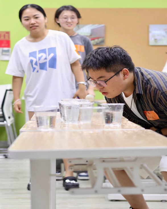 紧接着,开始了游戏“文王一支笔”和游戏“乒乓路路通”。不仅考验了团队的协调与配合,也对成员间的沟通和共识提出了要求。在这两个游戏中,巧妙地让学生们在愉快的互动中感受到合作的力量,并进一步加深对彼此的理解与信任,有效考验了队员间的相互支持与耐心。