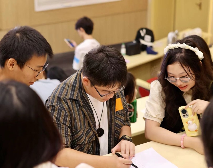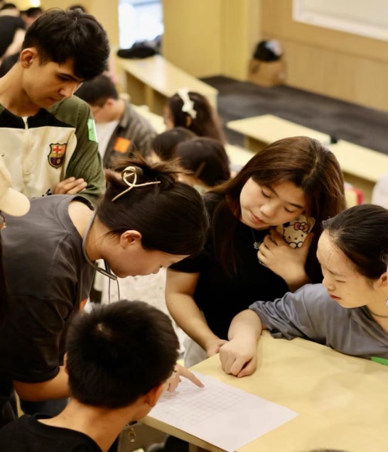 而对于最后的挑战与集体回归,在同学们完成自由探索的项目后,再次集结在最初的教室进行 “莱菔蹲”团队比拼。每个小组需要用最快的速度完成队员名字的接龙,速度与记忆成为胜负的关键。同学们不仅可以在游戏中再次加深对组员的认识,还能在这最后的比拼中将团队精神推向高潮。