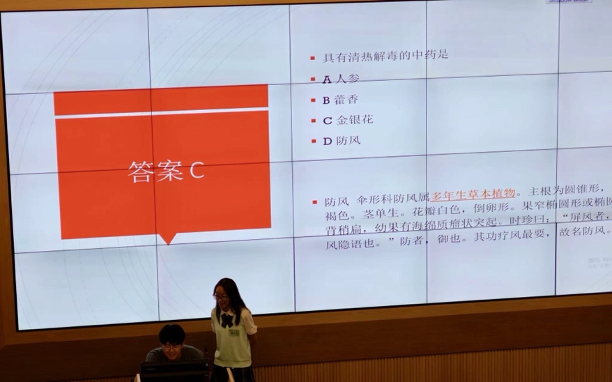 游戏活动结束后,同学们意犹未尽,争先恐后的上台进行才艺展示,动听的歌声,灵动的舞蹈……与此同时,知识问答环节将知识与趣味结合,以中药为主题的五十道问题,不仅为中药学知识的积累提供了平台,也增加了活动的学术深度。这促使学生们在活动的最后阶段同样重视知识的角逐与团队配合。