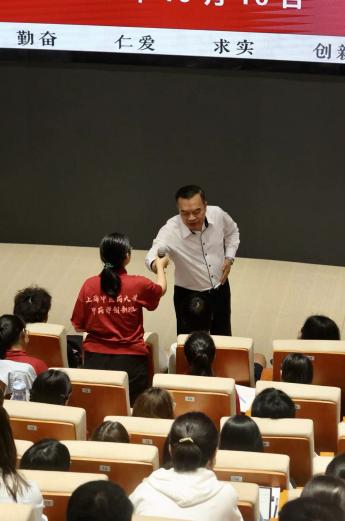 整场讲座以互动问答的形式开展,徐宏喜教授循序渐进、深入浅出、抛出问题引发同学们思考,“什么是中药?植物药,化学药,汉方药的区别在哪里”“中药治什么病最有效?”“现场的大家有没有想做中药学领军人物的?有没有想在中药领域苦心钻研,拿取诺贝尔奖的?” 循循善诱,让各位新生尤其是还没有接触过中药学课程的学生,一步步跨入中医药的宝贵大门。