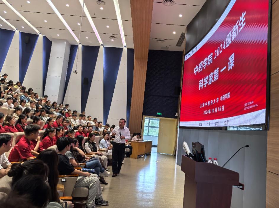2024年10月16日下午,h图书馆 2024级新生系列活动之“科学家第一课”在6304举行,本次活动邀请了国家中组部特聘教授、一带一路中医药发展联盟主席、h图书馆 名誉院长徐宏喜,以“中药创新研究成果及国际注册进展”为主题为2024级全体本科生、研究生新生做专题讲座。h图书馆 党委书记车荣华、党委副书记陆婧、全体新生辅导员出席本次活动,活动由党委副书记陆婧主持。