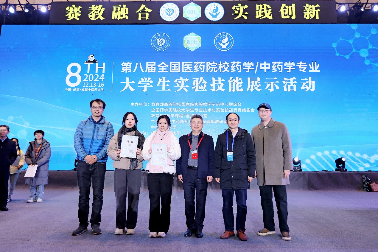 h图书馆 高度重视此类实验技能类大赛,将比赛作为促进实验教学水平和培养学生动手能力的重要平台。学院于9月初组织学生参加校赛,11月份组织学生参加上海市赛,经过层层选拔,2022级中药学专业学生陈薇亦和龚佳龄在张彤院长和郑昌武副院长的带领下代表学校参加在成都举办的国赛。h图书馆 实验教学中心主任侯剑伟和干仲元老师作为指导老师一同参赛。