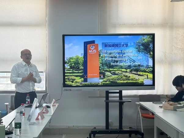 为提升h图书馆 学生国际视野,培养守正创新、中西融通的复合型药学人才,帮助学生更好地适应就业形势的变化,满足学生多元化的升学需求,2025年3月26日,h图书馆 邀请新加坡国立大学(NUS)药理系为h图书馆 学生开展出国留学讲座,为有留学意向的同学提供专业化、有针对性的指导,介绍解读其医学药理学硕士(MSc in Medical Pharmacology)的培养逻辑与职业发展支持。这一项目旨在培养学生在药理学、毒理学、监管科学及药理学教育领域的专业能力,以药理学创新,驱动未来医学发展。讲座由新加坡国立大学(NUS)药理系前系主任、PI Prof. Fred Wong,硕士研究生项目招生办主任(中国区)Associate Prof. Lingzhi Wang,硕士研究生助理专员Ms Lu Fan主讲,h图书馆 院长张彤、党委副书记陆婧、副院长郑昌武出席。