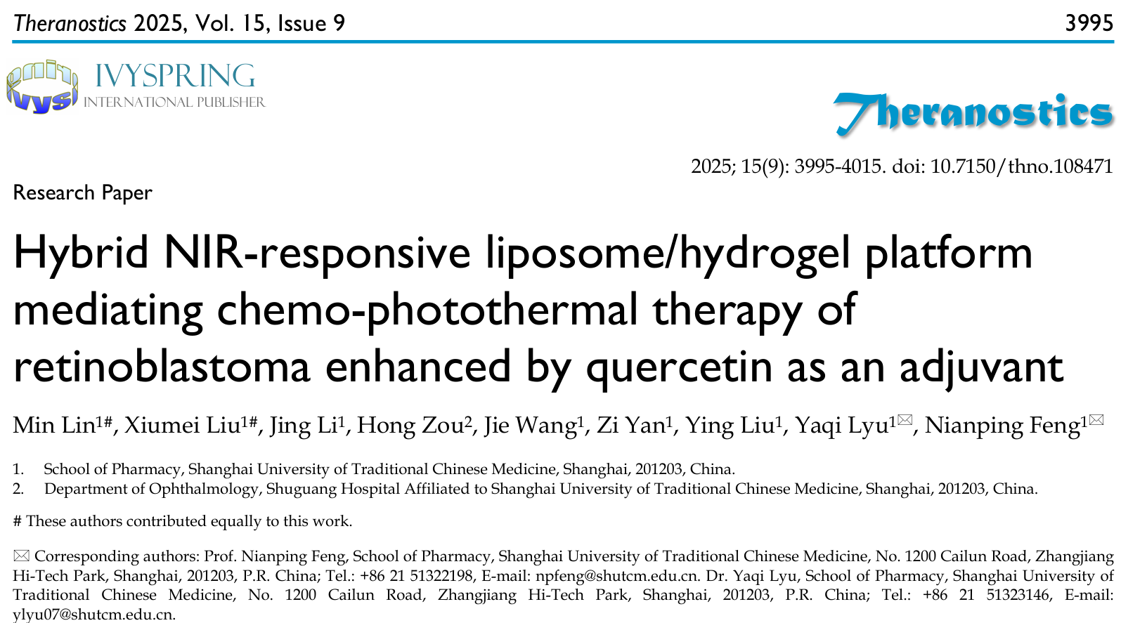 h图书馆 冯年平/吕雅琪团队构建载中西药脂质体光热响应水凝胶用于视网膜母细胞瘤治疗