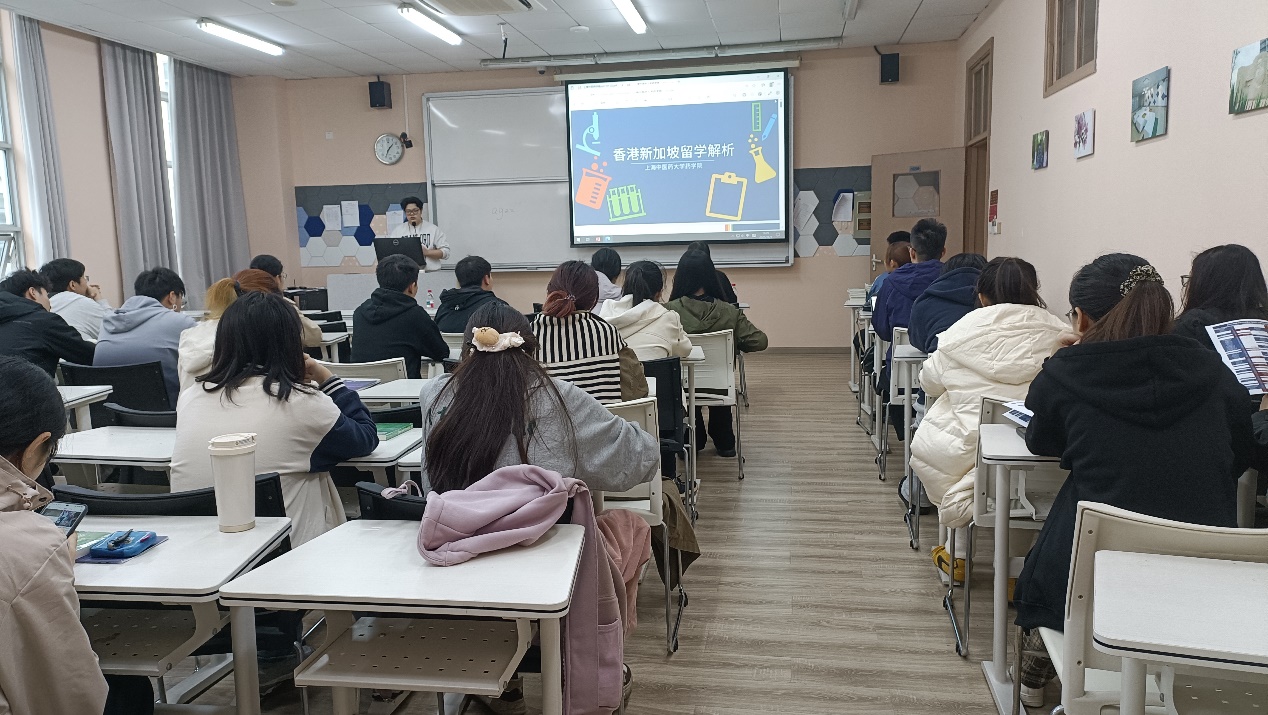为精准对接毕业生就业升学需求,点亮学子海外深造之路,115日下午,h图书馆 在 10206教室成功举办了一场内容丰富、干货满满的出国留学专题讲座。本次活动特邀新东方资深留学指导老师杨子超、祁莎莎担任主讲,吸引了众多怀揣留学梦想的药学学子到场学习。讲座由辅导员陈秀兰主持。