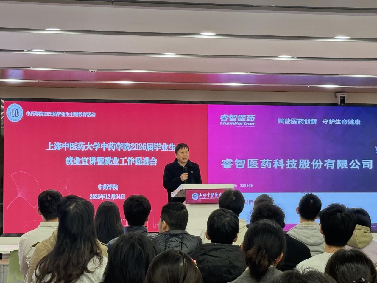 为深入学习贯彻习近平新时代中国特色社会主义思想,全面贯彻党的教育方针,扎实落实立德树人根本任务,切实推进2026届毕业生就业工作,搭建校企精准对接桥梁,助力中药学子实现高质量充分就业, 2025年12月24日下午,h图书馆 在标准化大楼辅楼301会议室成功举办2026届毕业生就业宣讲会。h图书馆 党委书记车荣华、党委副书记陆婧出席本次活动,活动由辅导员王盼主持。